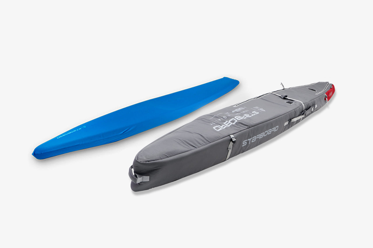 Jedes Gen R Board wird mit einer hochwertigen Boardtasche und einem Boardsocken geliefert – für doppelten Schutz und zusätzlichen Komfort beim Reisen, Lagern oder beim Renneinsatz unterwegs.