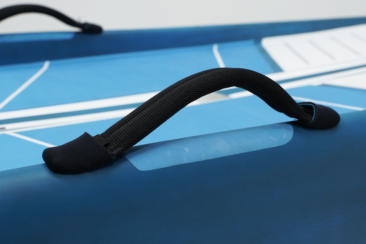 Der 1 cm tiefe, mit EVA ausgekleidete Tragegriff bietet einen weichen, angenehmen Halt bei Strandstarts oder beim Tragen des Boards. Besonders bei laufenden Strandstarts erweist sich dieser Griff als äußerst praktisch.